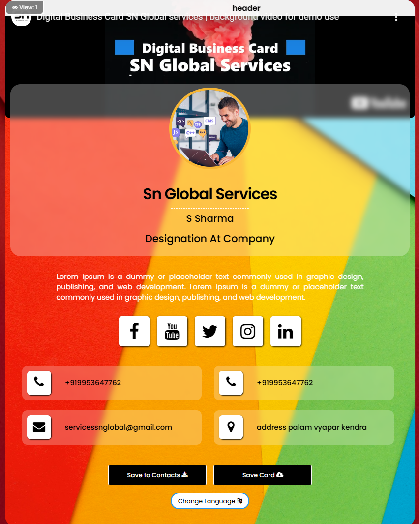 Now creating business card is very easy and free. Go digital share unlimited times.